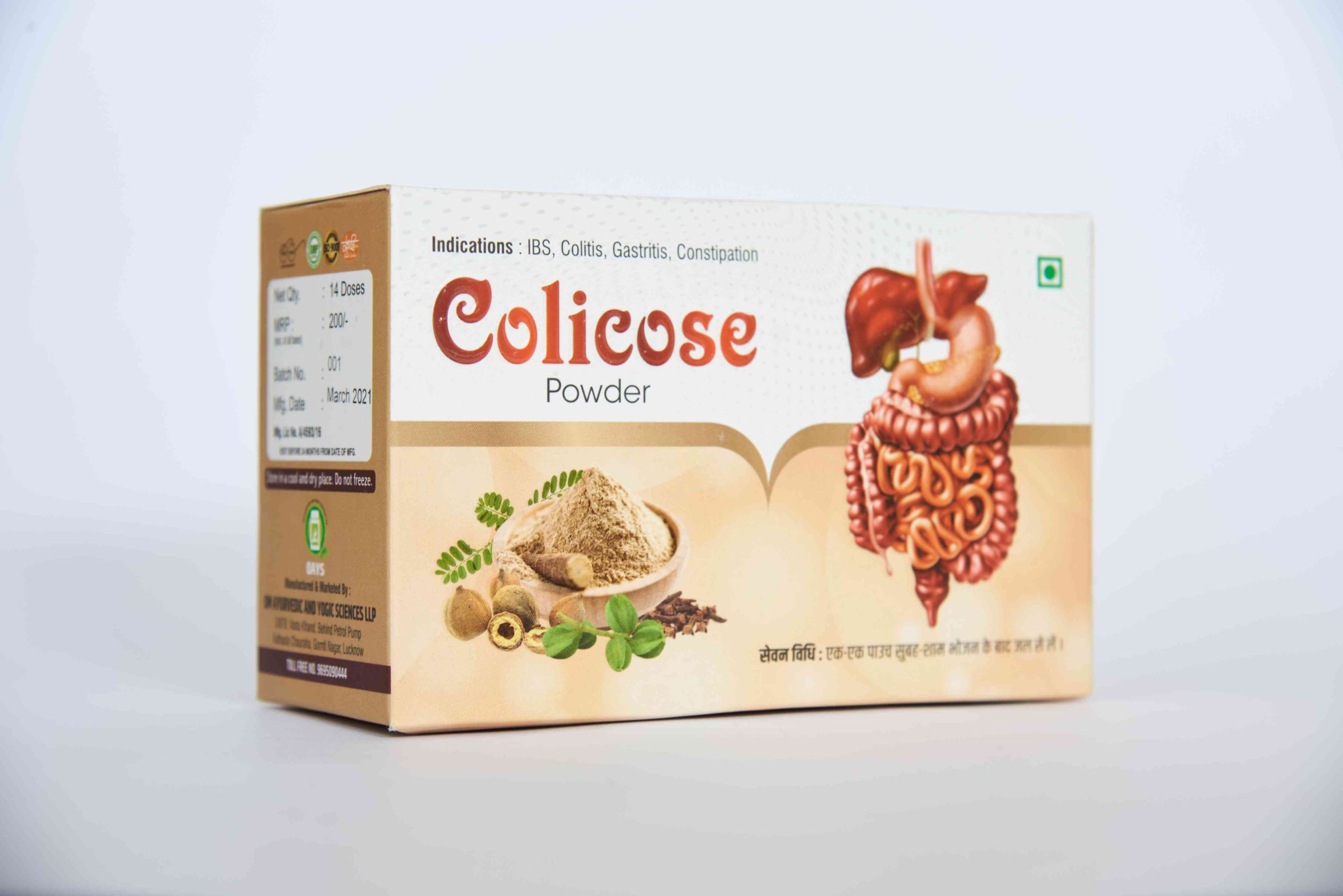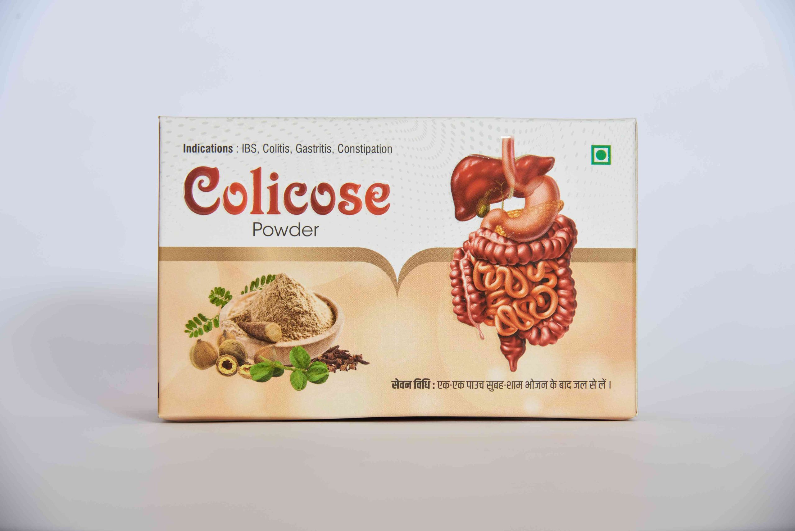 Colicose Powder acts as a digestive powder that helps you to get rid of IBS, Colitis, Gastritis, Constipation & other stomach-related problems. Colicose Powder contains ingredients like Phyllanthus Emblica, Terminalia belerica, Terminalia chebula, Pluntago Ovata, Syzygium Aromaticum, Operculina Turpethum, etc that help in digestion.